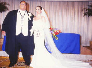 1992年、小錦八十吉さんと塩田すみかさんの結婚式は、都内の有名ホテルで行われました。この結婚式は民放テレビ局によって全国中継され、芸能界・スポーツ界を代表する多数の著名人が参列するなど、当時としても極めて豪華な内容でした。ウエディングドレス姿の塩田すみかさんとタキシード姿の小錦八十吉さんが並ぶシーンは、ワイドショーや新聞各紙にも大きく取り上げられています。